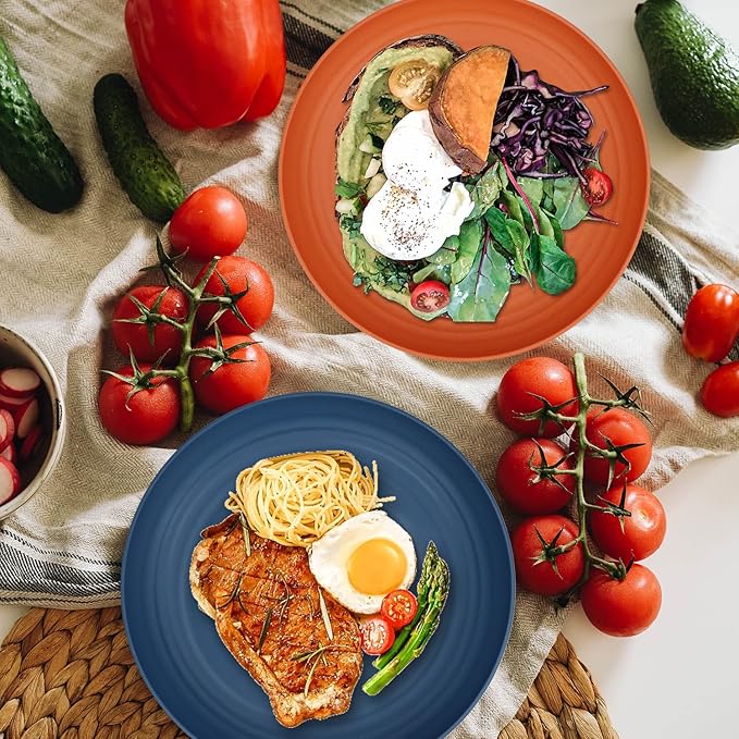 - ๐๐จ๐ฅ๐จ๐ซ๐๐ฎ๐ฅ ๐๐๐ฎ๐ฌ๐๐๐ฅ๐ ๐๐ฅ๐๐ญ๐๐ฌ: Our Wheat straw plates come in 6 colors, orange, yellow, blue, navy, beige and green. Each color will give you a lot of fun while you use the colorful plastic plates, and your kids will love them too.