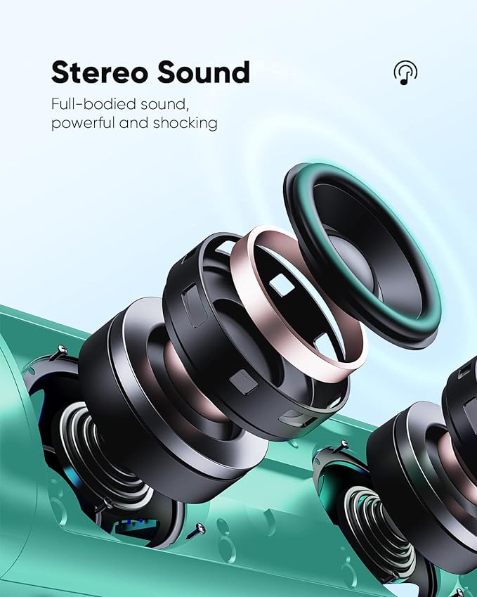 - [Immersive Sound Experience & Dual Connectivity] Experience unparalleled sound quality with this wireless Bluetooth speaker's 2 drivers and advanced technology that delivers powerful, well-balanced sound with minimal distortion. Connect two speakers together to create an immersive stereo sound experience and fill any room with powerful sound. Perfect for gaming, music, and movie playback
