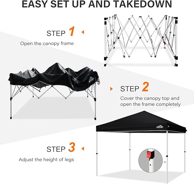 Pop up Canopy Tent,10x10 Instant Outdoor Canopy for Parties with Wheeled Bag,Black