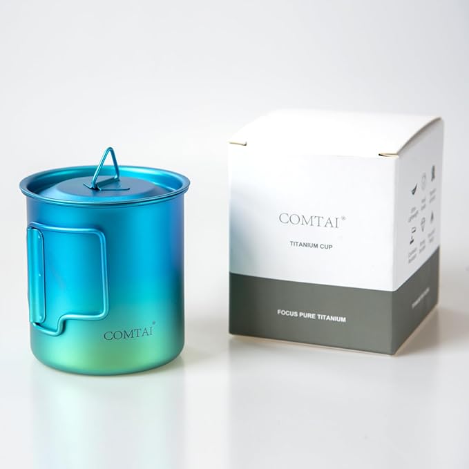 - 【PORTABLE&SLEEK DESIGN】Our titanium mug has a sleek and stylish design. Its compact size makes it easy to pack and carry, while the foldable handles make it even more convenient to store. The mug is also compatible with most standard cup holders, which makes it easy to use on the go. Its minimalist design ensures that it complements any outdoor gear or outfit, making it a perfect accessory for outdoor enthusiasts.