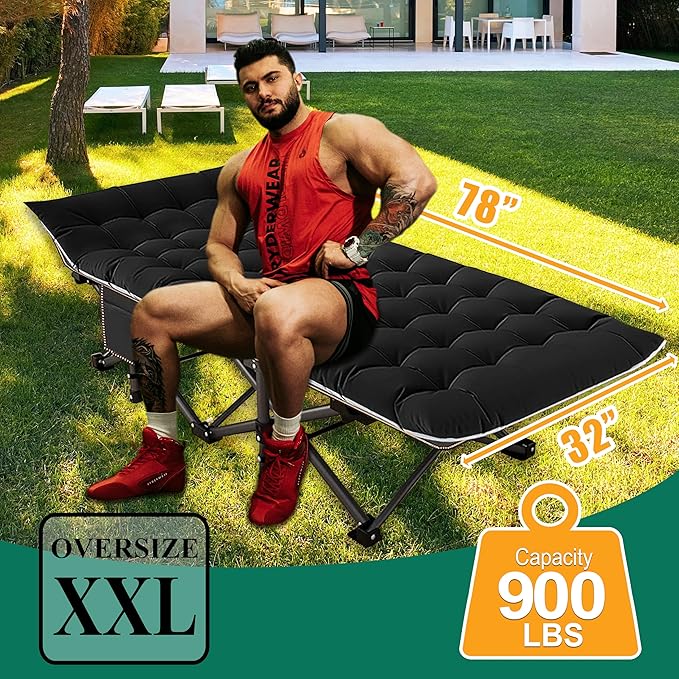 Camping cots, Oversized 32inch Width Portable Foldable Outdoor Bed for Adults Kids, Cot for Traveling Gear Supplier, Office Nap,Support 900 lbs-with Sleeping Pad Mattress