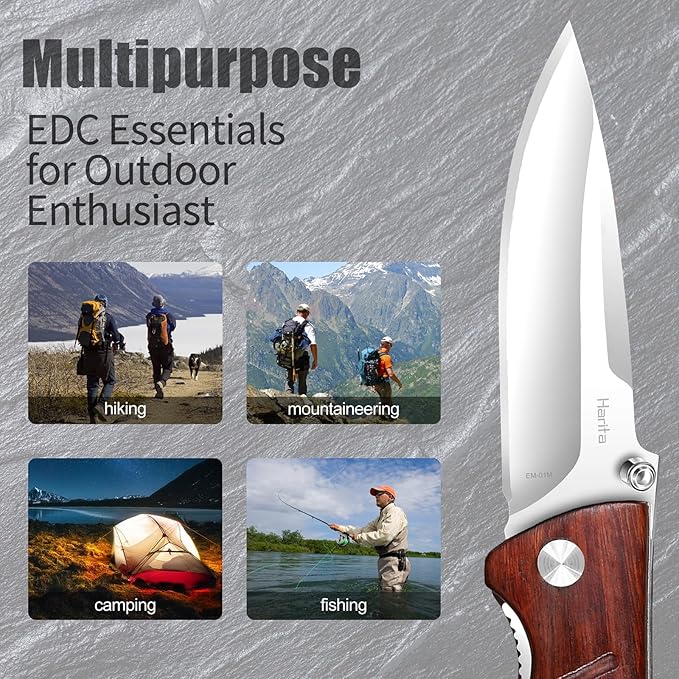 Harita Pocket Knife Folding Knife EDC Knife with Pocket Clip, 2.76 inch 8Cr13MoV Steel Blade, Rosewood Handle, Foldable Camping Fishing Survival Hunting Liner Lock Knife for Men Women