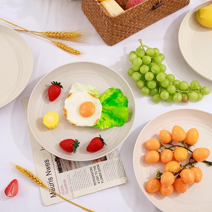 supernal 16pcs Lightweight Wheat Straw Plates,Unbreakable Plastic Dishes,Microwave Dishwasher Safe Party Plastic Dish,Beige Reusable Dinner Plates, Wheat Straw Dinnerware for Picnic,Birthday,Camping