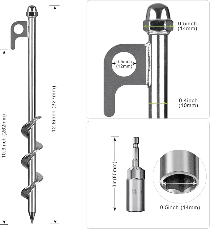 - 【Easy Installation】Comes with a 14mm socket, quickly screw these metal anchors into the ground using a drill. Install them in just minutes, saving time and effort