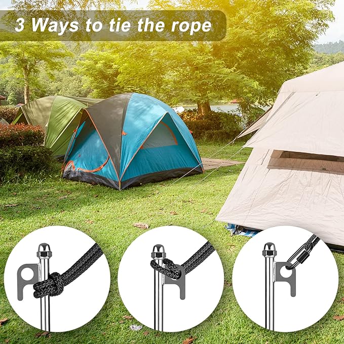 - 【Heavy Duty Ground Anchors】Made of high-quality steel with a chrome finish, our tent anchors are durable and resistant to damage and rust, ensuring long-term use in all weather conditions