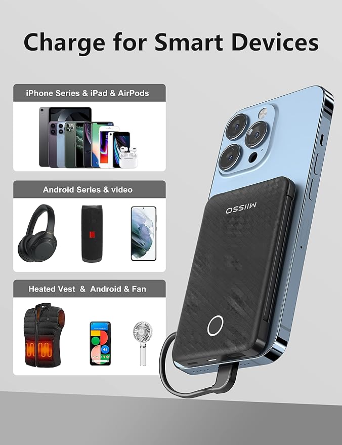 - Credit Card Size: They are the slimmest and the smallest of MIISSO portable chargers with cables, only 0.27lb(122g) and their body like a credit card. The lightweight design let you take it out without pressure. It's slim enough to put it in your pocket or in your handbag