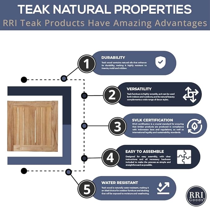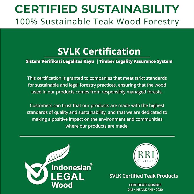 - CERTIFIED: We only use the highest quality Grade A teak sustainably from Indonesia with SVLK sustainability certification ensuring use of environmental friendly raw material.