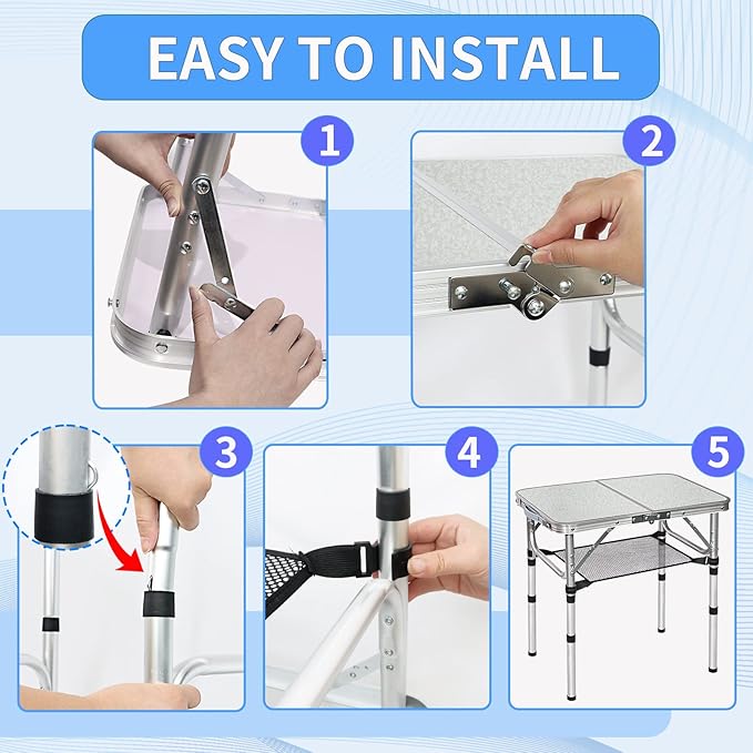- Installation Quick :Don't want to carry extra installation tools? You can install it independently, just open the folding camping table, insert the legs, and secure the lock. You can set up this desk in a minute while your friends stare at you with envy