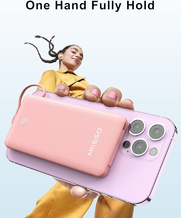 - Universal Compatible with Most Devices: As portable phone charger builts in 2 cables, it is widely compatible with most cellphones or tablets. Widely compatible with iPhone 16, 15, 14, 13, 12, 11, 8, 7, AirPods, Samsung S24, S23,S22, S21 and other andorid USB C or Micro USB phones, tablets