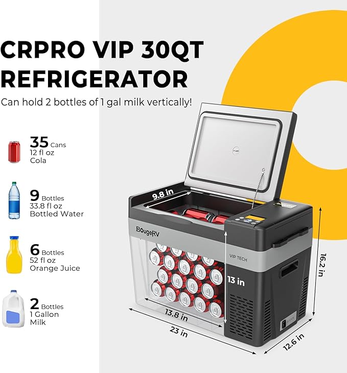 BougeRV 12V 30 Quart Refrigerator, CRPRO VIP, Compressor Electric Cooler with 12V/24 DC, 110-240 AC for Outdoor Camping Overlanding Truck RV SUV Van