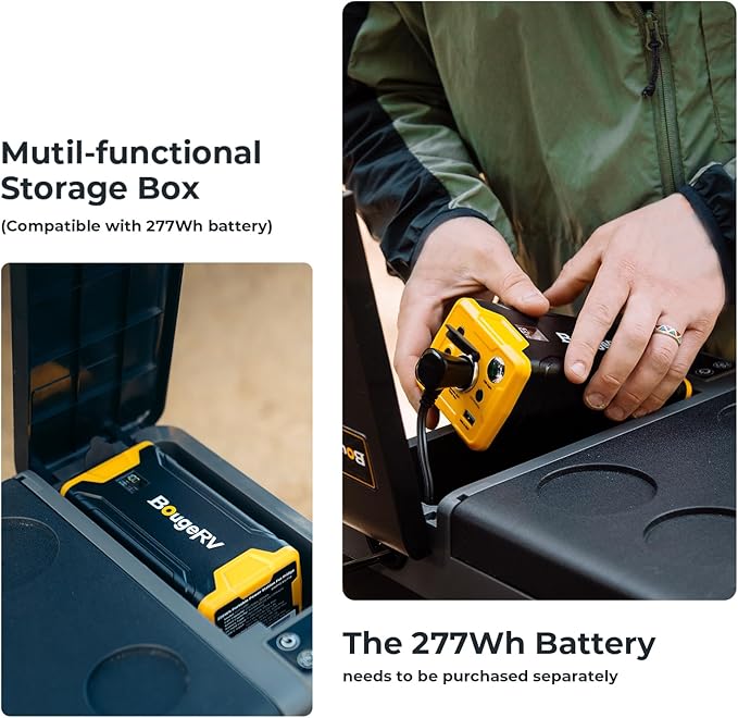 - Generous Storage Box: The CRPRO refrigerator comes with a storage box, you can put the 220Wh power station and accessories into it, which can extend the use time of the refrigerator and prevent the wires from being lost. If you need it, please search "BougeRV 220Wh Portable Power Station" on Amazon