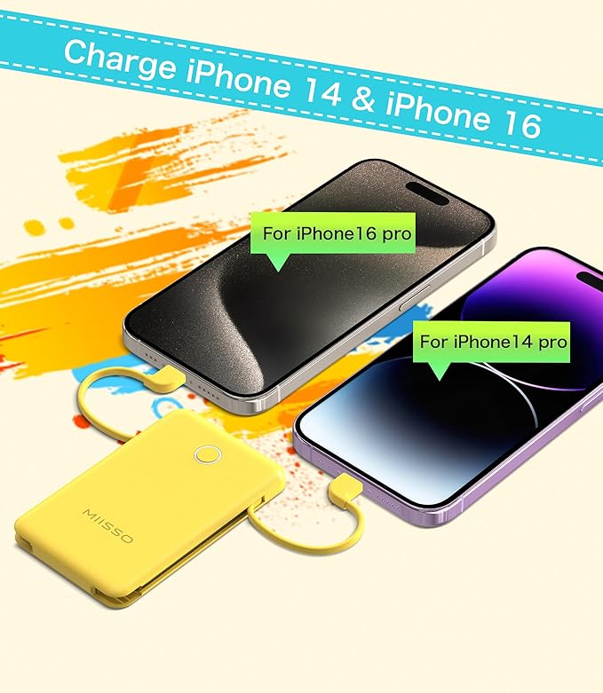 - Credit Card Size: It is the slimmest and the smallest of MIISSO portable chargers with cables, only 0.27lb(122g) and its body like a credit card. The lightweight design lets you take it out without pressure. It's slim enough to put it in your pocket or in your handbag
