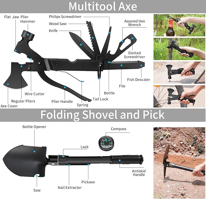 - Complete camping tools: This kit contains most of the products you need for camping, which can solve most of your problems when camping. Even at night there are tools that allow you to see more clearly and make your camping trip smoother