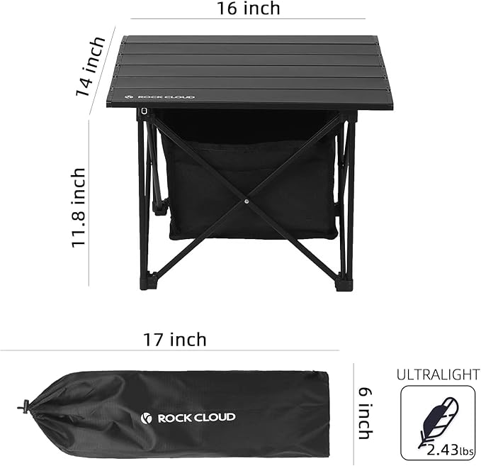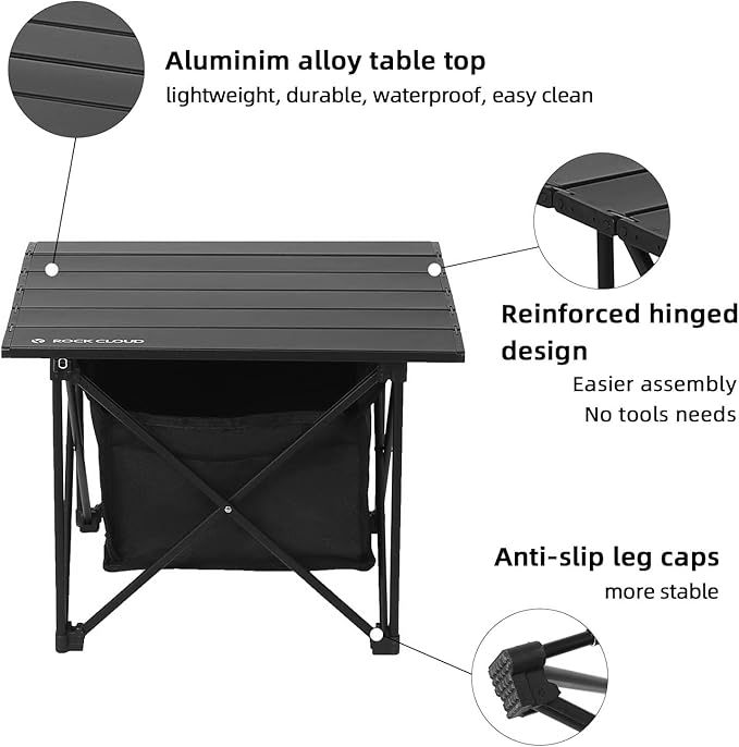 ROCK CLOUD Portable Camping Table Ultralight Aluminum Camp Table Folding Compact Beach Table with Storage Bag for Camping Hiking Backpacking Outdoor Picnic(Reinforced Frame-Small)