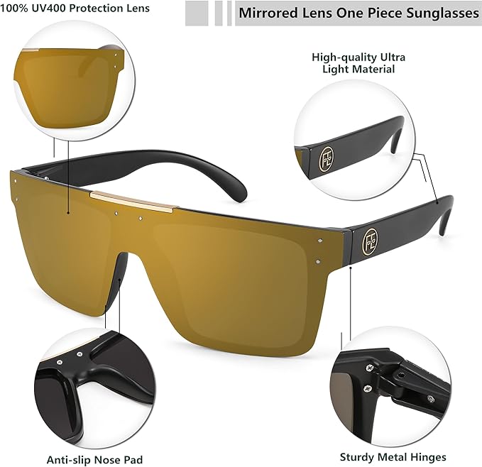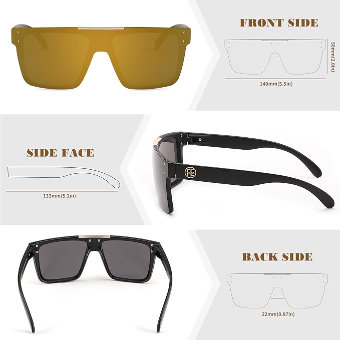 - 【Flat Top Shield Sunglasses】These Retro Sunglasses with an oversized square frame design, oversized sunglasses for men, can well modify the face shape, the overall appearance of the sunglasses is very fashionable, trendy, cool, unique, and cute, and also suitable for high fashion accessories and daily wear all year round