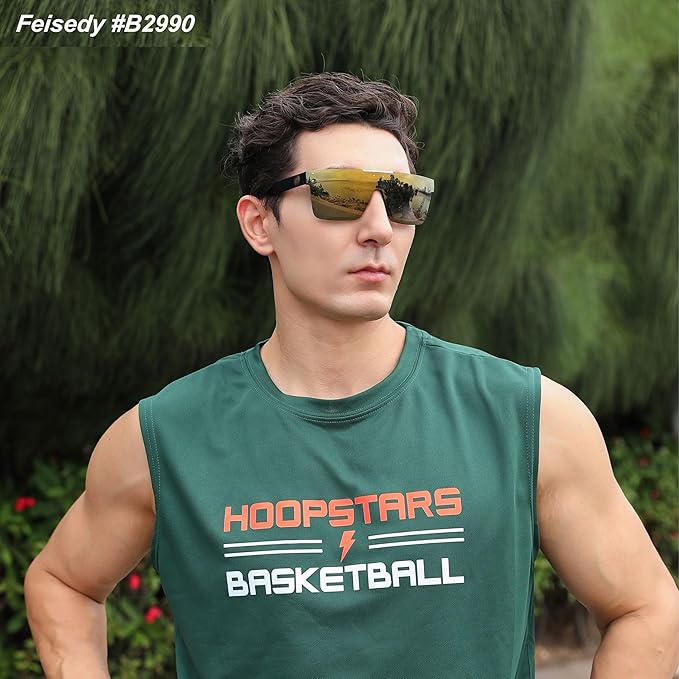 FEISEDY Men Sunglasses Polarized Oversized Square Flat Top Cycling Running Fishing Golf Hiking Sports B2990