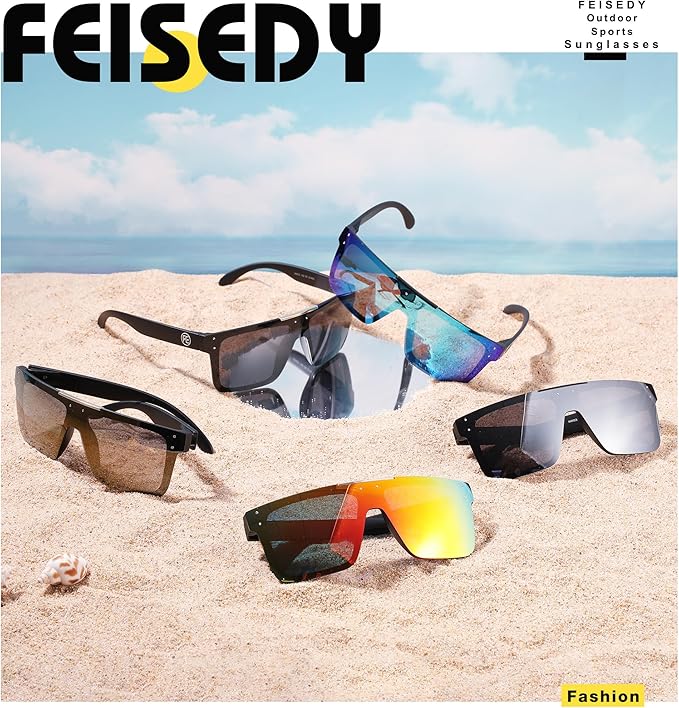 - 【Polarized & UV 400 Lenses】 FEISEDY UV400 polarized lenses can effectively block ultraviolet rays and glare can protect the eyes, with strong anti-light effect, especially in driving vehicles, and outdoor activities, you can wear polarized glasses, can reduce direct interference and stimulation of ultraviolet light on the eyes, is conducive to eye health, to avoid eye dryness, stinging.