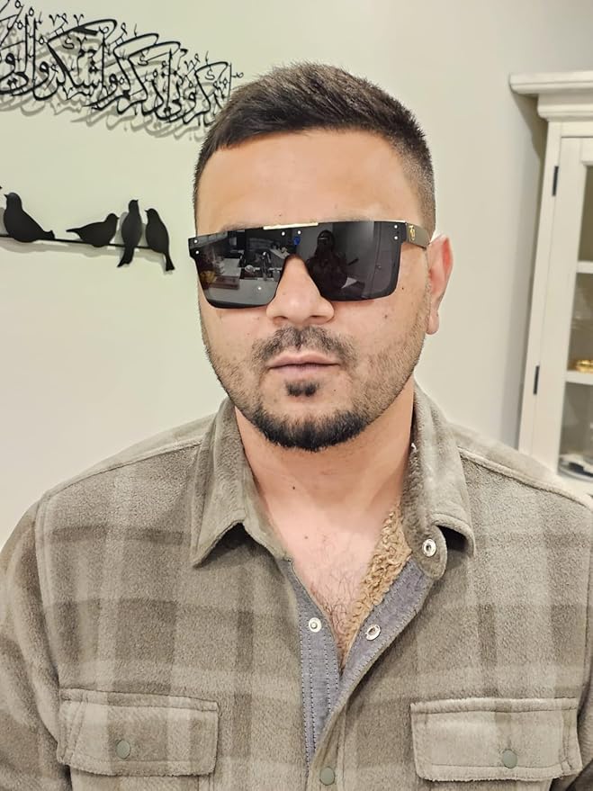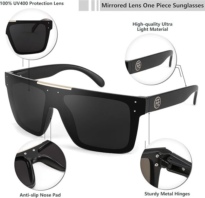 - 【Flat Top Shield Sunglasses】These Retro Sunglasses with an oversized square frame design, oversized sunglasses for men, can well modify the face shape, the overall appearance of the sunglasses is very fashionable, trendy, cool, unique, and cute, and also suitable for high fashion accessories and daily wear all year round