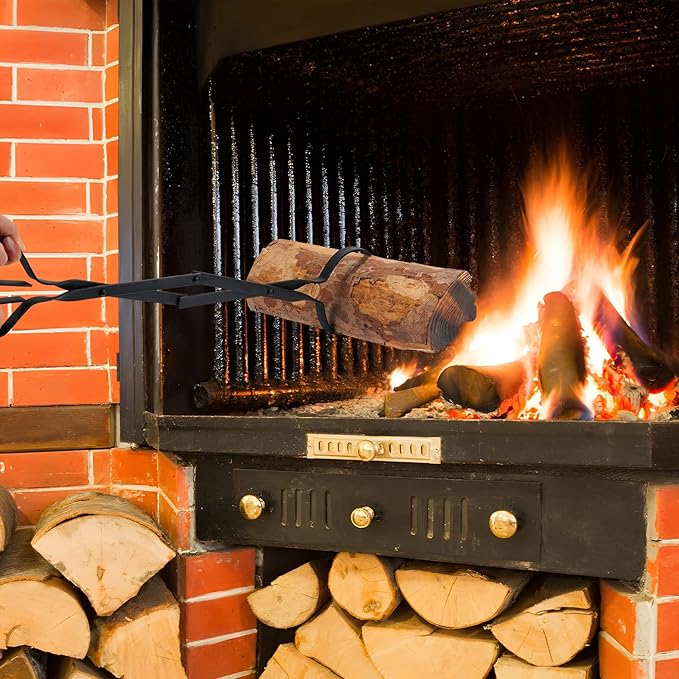 - Fireplace Tongs: Length-25in/63.5cm, weight-1.76lb/0.8kg, the smooth open and close action and strong grabbing force makes it easy to get a strong grip on pieces of wood, even if it’s heavy or an unusual shape. The design of the tip also grips small logs perfectly, keep you away from the heat, so you can get the wood exactly where you need it and keep the fire stoked. Folding design makes it easy to storage when not in use