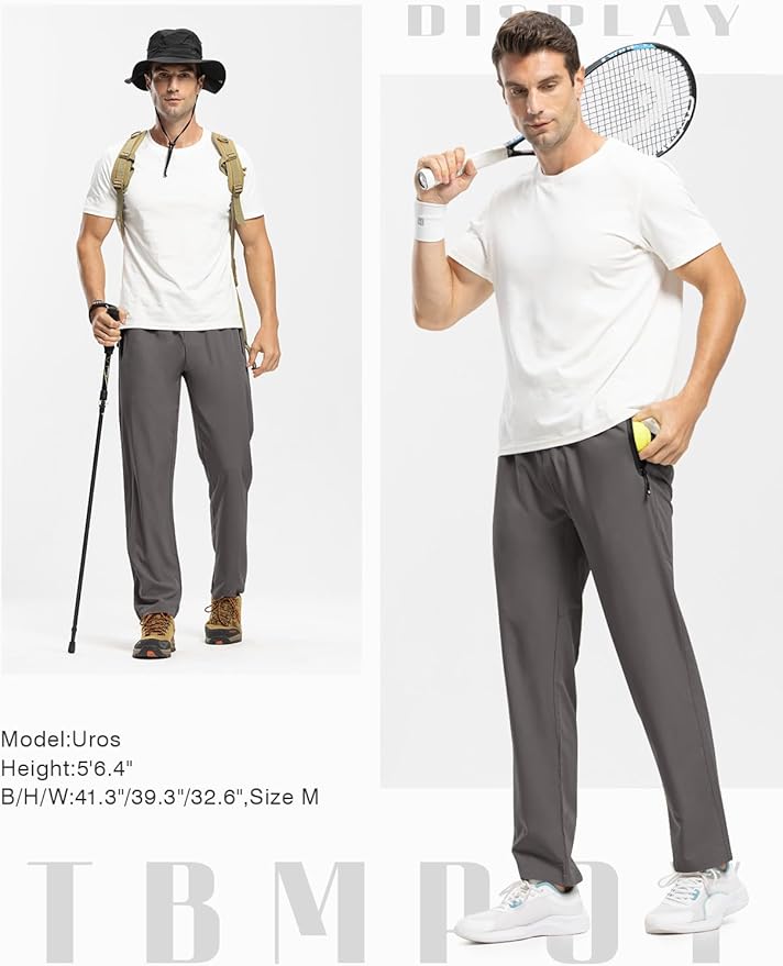 TBMPOY Men's Lightweight Hiking Travel Pants Breathable Athletic Fishing Active Joggers Zipper Pockets