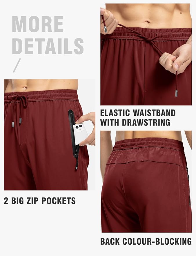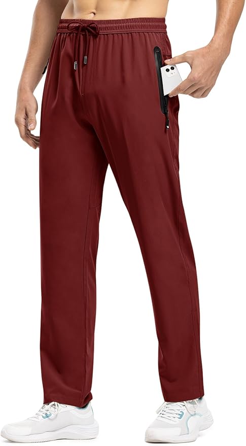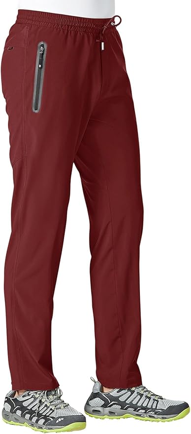 TBMPOY Men's Lightweight Hiking Travel Pants Breathable Athletic Fishing Active Joggers Zipper Pockets