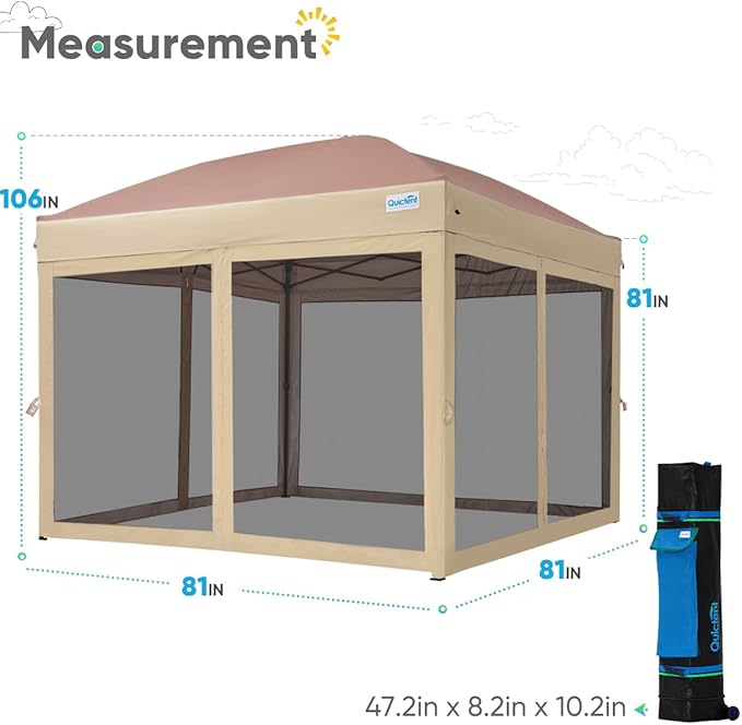 - [MESH SCREEN NETTING]: The pop up canopy tent with netting to keep unwanted elements away and let fresh air & light in. The net connects to top with 360 degree velcro strap,fully enclosed. This pop up canopy is a perfect screen house for backyard,deck,camping or other outdoor activities.