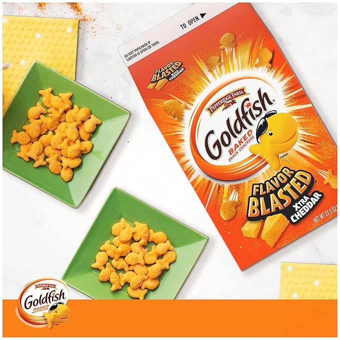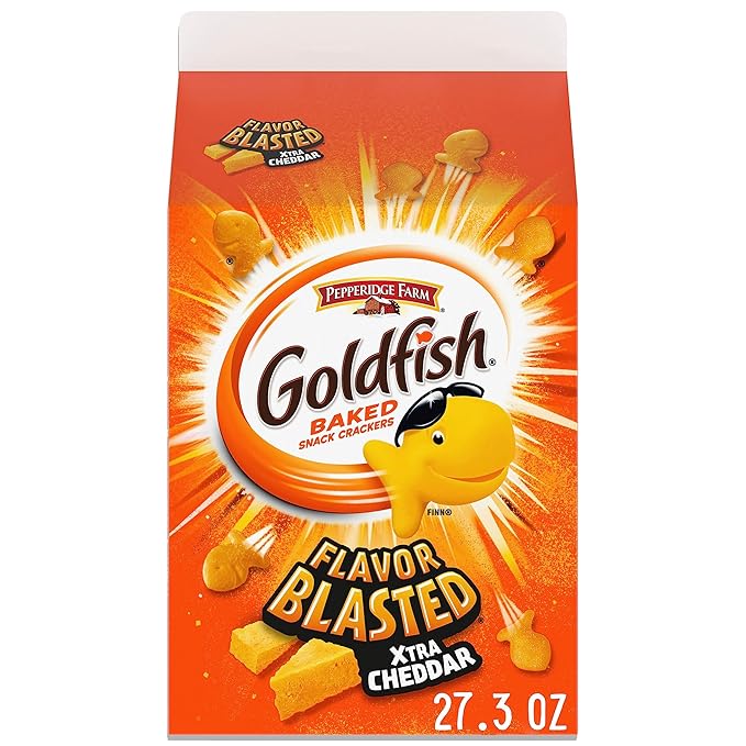 - THE SNACK THAT SMILES BACK: Packed with big, bold flavor, Goldfish Flavor Blasted Xtra Cheddar Cheese Crackers are fun, fish-shaped snack crackers with a smile