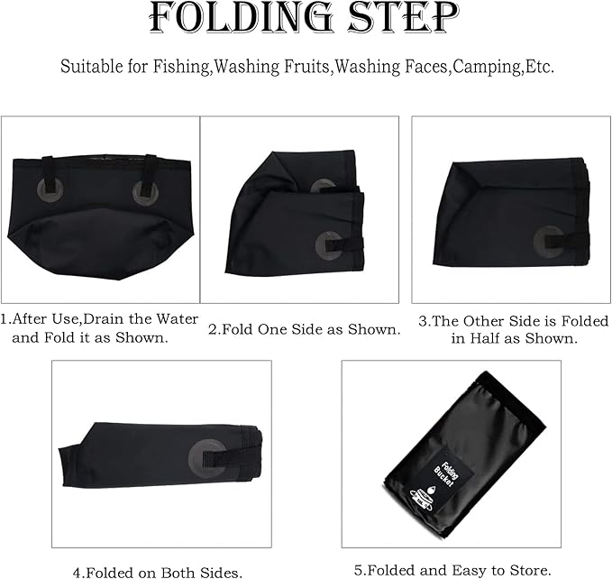 - Multi-functional Fold Bucket: This collapsible bucket is excellent for home storage, camping, picnic, fishing, hiking,boating, and more outdoor activities. Whatever you need a fish bucket, portable wash, travel basin or anything else, you can count on this compact collapsible bucket