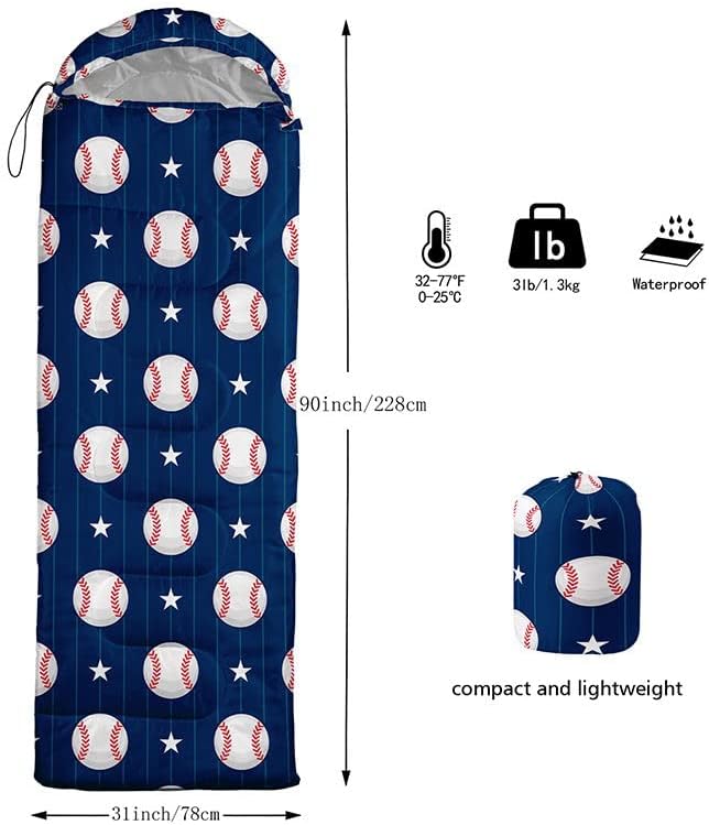 - SUITABLE:The sleeping bag can be used for 3 Seasons.SIZE:80*230cm Suggenal extreme temperature: 41 ℉ -77 ℉.Applicable in a variety of scenarios,such as Travel camping pajamas party,It's very suitable for you to travel with your children.Half-circle hood with adjustable drawstring,which can keep you warm and prevent your humidity