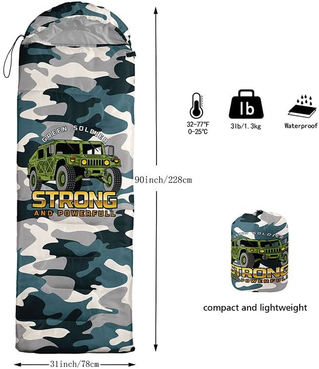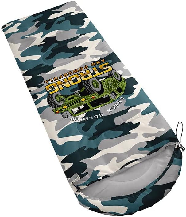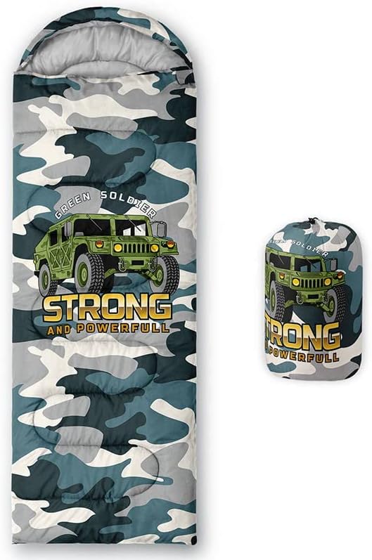 - SUITABLE:The sleeping bag can be used for 3 Seasons.SIZE:80*230cm Suggenal extreme temperature: 41 ℉ -77 ℉.Applicable in a variety of scenarios,such as Travel camping pajamas party,It's very suitable for you to travel with your children.Half-circle hood with adjustable drawstring,which can keep you warm and prevent your humidity