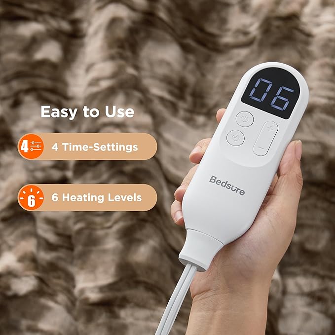 - CUSTOMIZABLE WARMTH: Experience quick, consistent, and safe warmth powered by PTC/NTC heating wire technology. This heated blanket features 6 heating levels and 4 time settings for personalized coziness, perfect for those always cold