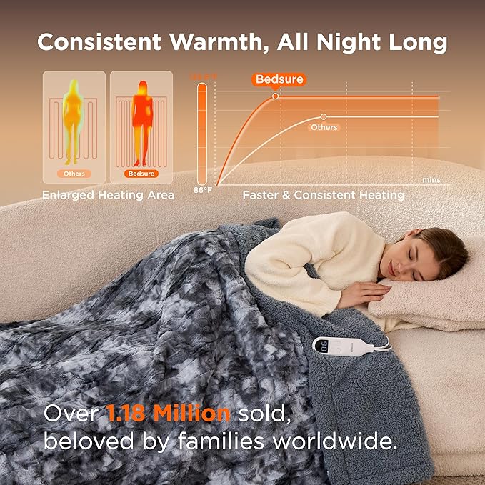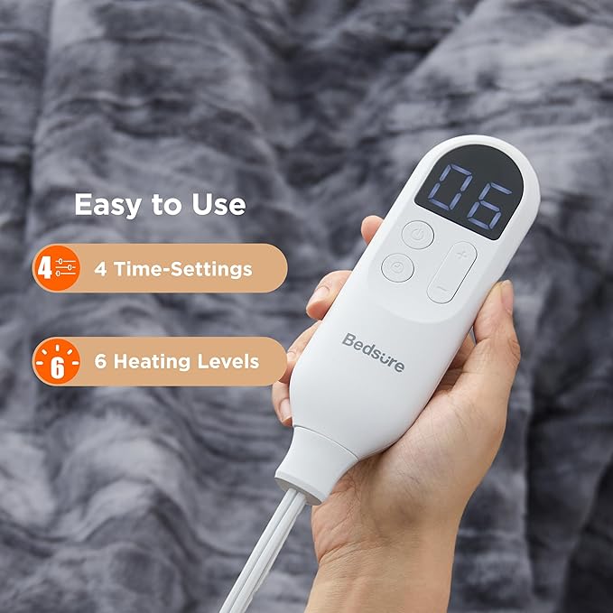 - CUSTOMIZABLE WARMTH: Experience quick, consistent, and safe warmth powered by PTC/NTC heating wire technology. This heated blanket features 6 heating levels and 4 time settings for personalized coziness, perfect for those always cold