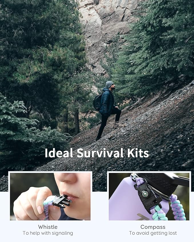 - 【Full-Function Accessories】: You can sip through the flip-up straw lid and drink like a fish through the spout lid. Each lid comes with a rubber seal ring to ensure 100% non-leakage. The functional paracord handle is portable on the go. Compact compass and whistle are ideal survival kits for expeditions in the wild. The carabiner helps clip the bottle anywhere.