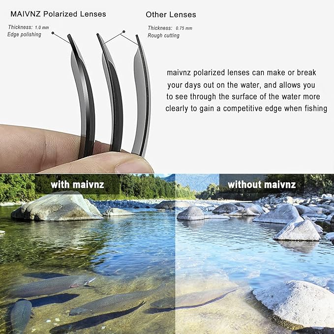 - UV PROTECTION: Protect your eyes from harmful UVA and UVB rays with these fishing glasses. Ideal for long hours spent on the water, these polarized sunglasses offer superior comfort and protection