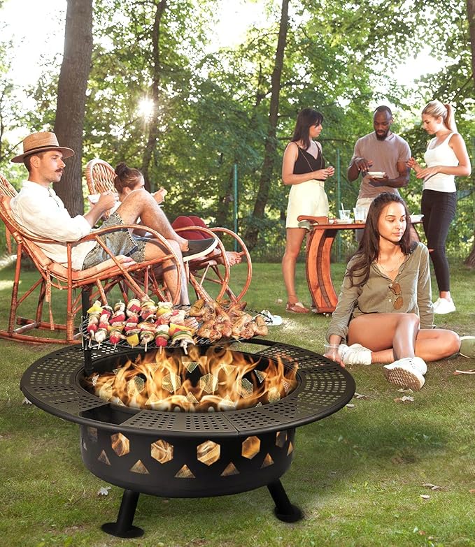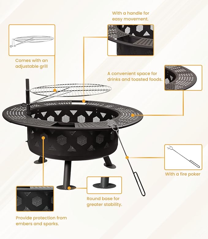 - 【Easy to Assemble】Comes with an easy-to-read manual and all hardware for assembling,finished in 15 minutes.Plus, the backyard fire pit package includes a portable poker, allowing you to use it to move the heated cooking grill or logs to prevent accidental burns.