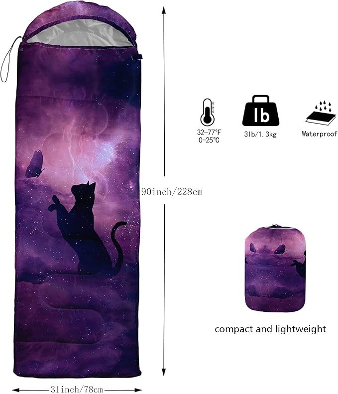 - FITS FOR 3 SEASONS: SIZE - 31 by 90 inches (W x D). Our sleeping bag can be used in 3 seasons with a design temperature of 32℉-77℉(0℃-25℃). These bags also have a weather resistant waterproof design to keep you warm and prevent you from any dampness.
