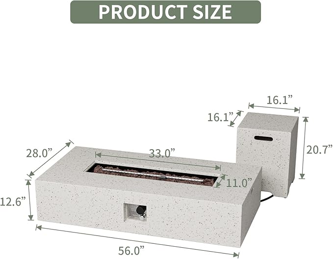- ๐ฅใPremium colorใ: Not white, it is beige with five colors of colored spots. It looks more sophisticated than a solid color fire table. The clean and high level beige square fire pit table is ideal for gathering with friends and family for warm, good conversation.