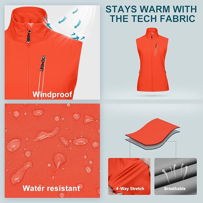 • WINDPROOF & LIGHTWEIGHT: This 33,000ft softshell vest for women is crafted with windproof lightweight fabric that keeps you warm and dry.