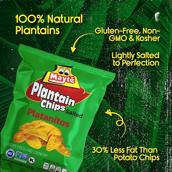 Mayté Lightly Salted Plantain Chips – 30 Individual Packs (3oz Each) – Crunchy, Savory, Healthy Snacks Made from Real Plantains – Non-GMO, Gluten-Free, Kosher – No Preservatives or Artificial Colors