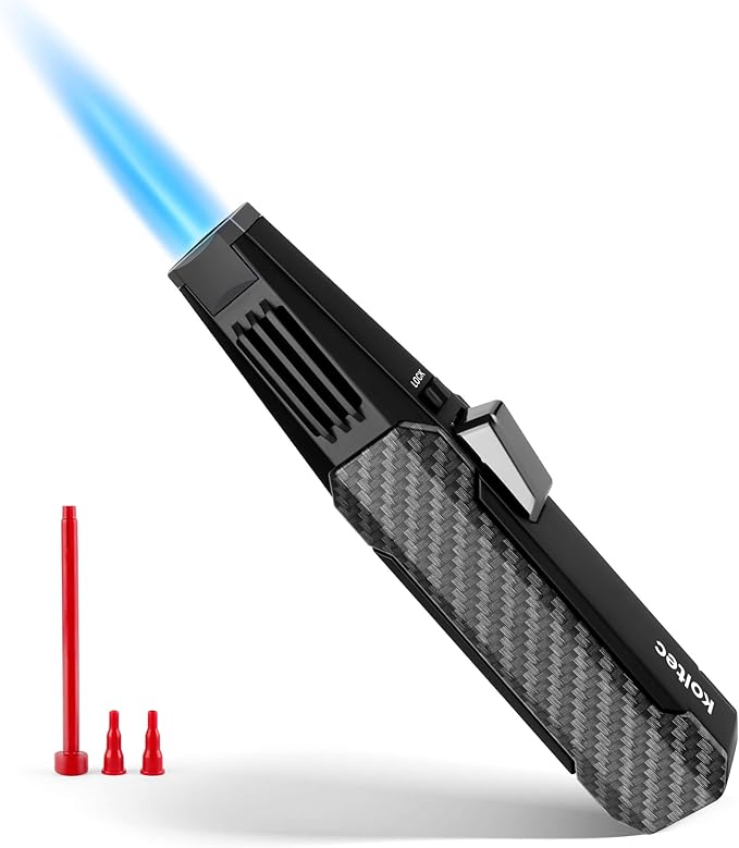 - Refillable & Adjustable Butane Lighter : Compared with disposable lighters,the torch lighter can be refilled many times. Turn the Adjustment towards the side marked(+) to increase the flame and turn to the other side marked(-) to decrease the flame
