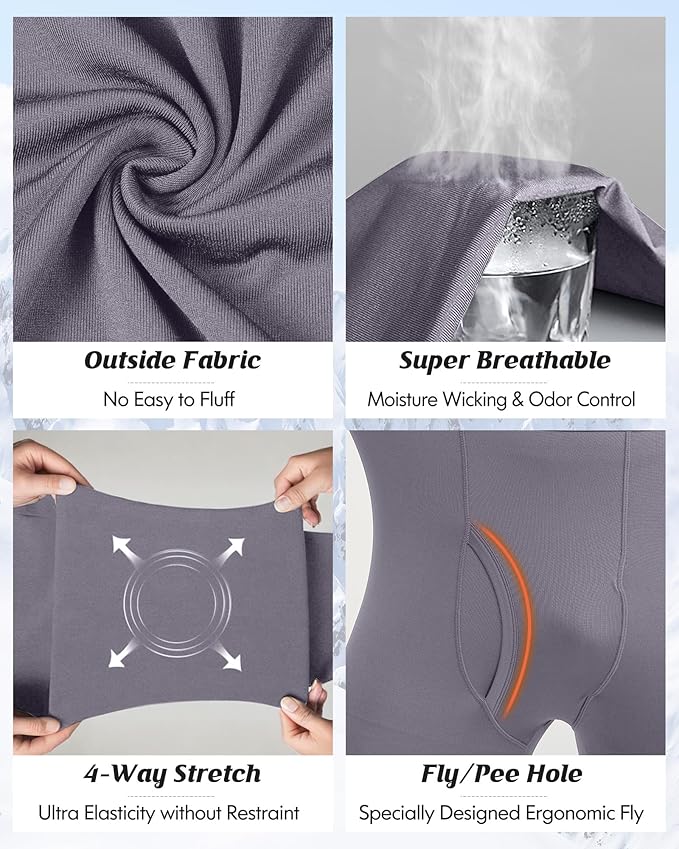 - Moisture-wicking and Anti-odor: Our fabric of the mens long underwear set quickly absorbs sweat without producing odor, keeping you dry and comfortable,so you can wear it for outdoor sports with complete confidence,For example,skiing,hiking,cycling