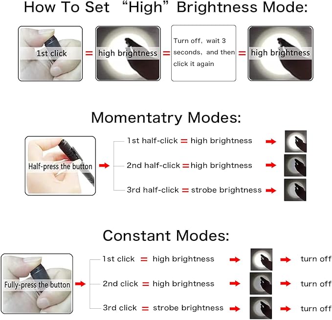 - 3 LIGHT MODES: The rechargeable penlight flashlight contains updated 350 lumens LED and a maximum beam distance of 80 meters, you can set High/Low/Strobe mode by the tail button. Zoom can be achieved by rotating the head of the pen light flashlight rechargeable, fully adjustable focus from wide to narrow beam