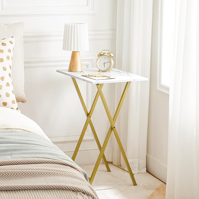 HOOBRO Folding TV Tray Table, Stable Snack Table for Small Space, Portable Sofa Side Desk, Easy Assembly and Storage, Ideal for Snacks and Meals in Living Room, Marble and Gold DM15BZ01