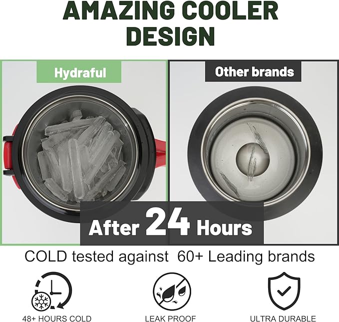 - INSULATED GALLON WATER BOTTLE: No Sweating! The Large Triple Wall Vacuum insulated mug uses 18/8 Stainless Steel insulation to make the Hydraful sweat-free! This sports jug will keep your drink COLD for up to 48 hours and Ultra-large one gallon water jug