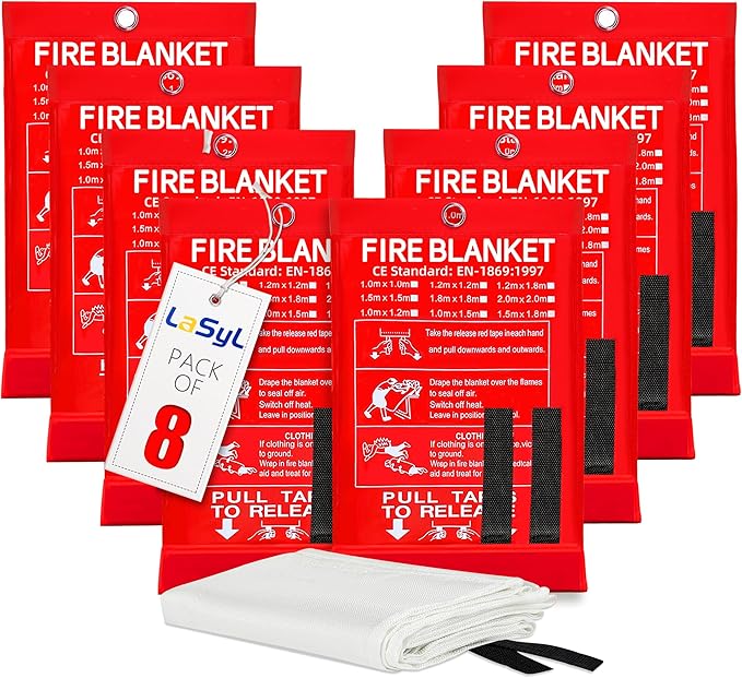LaSyL Fire Blanket Emergency for Home, 40" x 40"(Pack of 8), Fire Supression Blanket Good for Home Safety, Kitchen, and Camping,Hurricane Preparedness Items