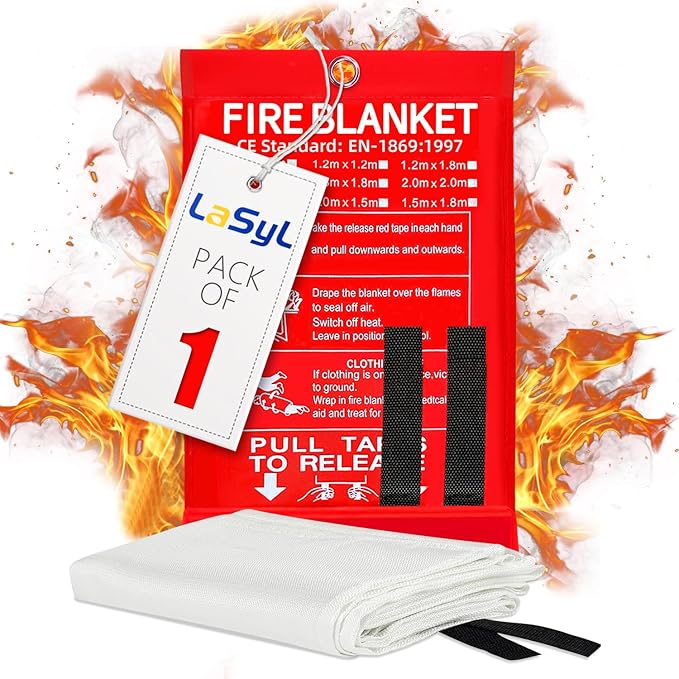 - IDEAL RESCUE: Experience a mess-free solution for small fires with LaSyL fire blankets, which feature an innovative oxygen-blocking design that effectively suppresses and extinguishes liquid or grease fires. These versatile blankets are suitable for most types of fire hazards, providing a reliable and efficient method to suppress flames and enhance overall fire safety, giving peace of mind
