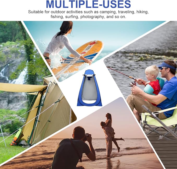 Pop Up Privacy Tent Camping Shower Kit 2 Pcs, 5 Gallon Outdoor Solar Portable Shower Bag Waterproof .Instant Tent Sun Beach Easy Set Up&Foldable for Hiking,Fishing,Beach,Washing,Outdoor
