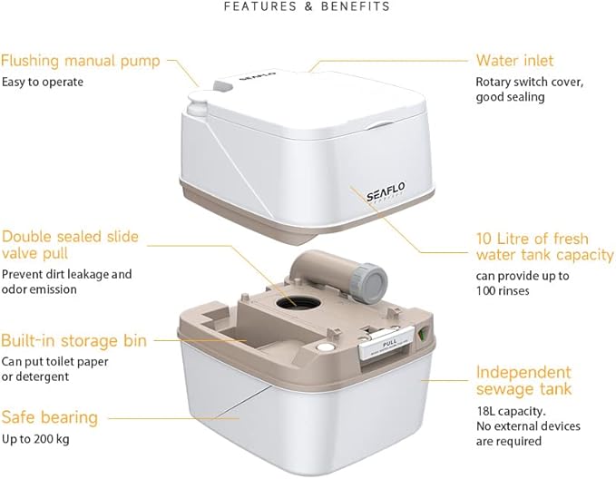 SEAFLO 4.8 Gallon (18L) Premium Portable Travel Toilet