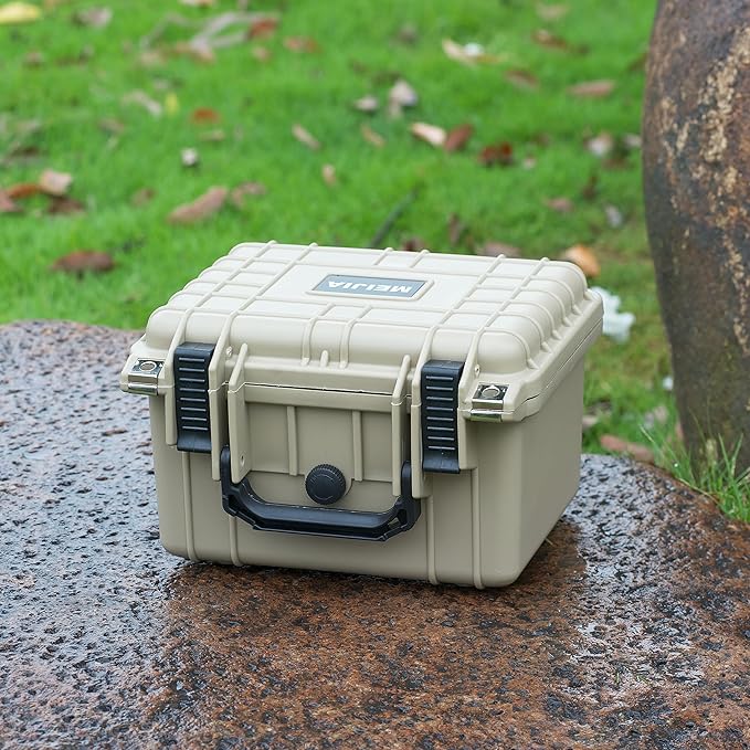 MEIJIA Portable All Weather IP67 Waterproof Camera Case,hard case with Customizable Fit Foam,Fit Use of Drones,Camera,Equipments,10.62 x9.68x6.87inches(Desert Tan)