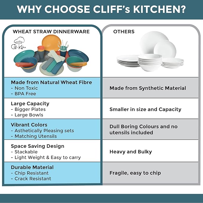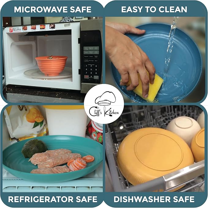 - ๐พConvenient and Easy to Use: Our wheatstraw dinner plates set is microwave and dishwasher safe. With Cliffโs kitchen dinner set you can effortlessly freeze, heat and clean your meals, making them perfect for busy families on the go